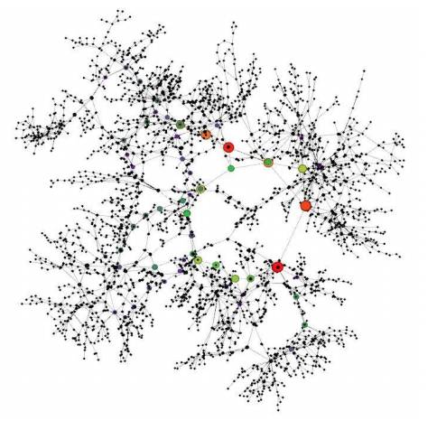 其实这个东西非常重要,因为它显示了信息传播的地域分布,显示了自组织状态,显示了大V在这里起的作用,显示了信息经由桥梁传播所带来的强关系带来信任,弱关系带来信息的特色,特别是地域。因为我们的统计都讲震撼,但是我们现在更多的应该普及幂律,特别是有一句话,尽管我不知道该怎么证明。但是有人说自然科学往往震撼,社会科学往往服从幂律。幂律就像我们今天看到的数据一样,实际上大量的数据都是波尾的幂律分布和规则,那如何从这里洞察呢?如何通过可视化的交互去看到每个节点的变化呢?这些都需要我们去思考。就像我拿到移动的你们跟机站握手的数据的时候,其实我就可以算出谁落在二环内,谁落在二、三环之间。